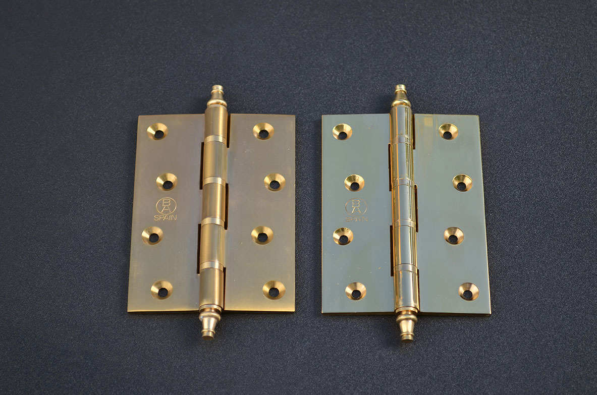 Bisagra en Latón 145 Brillo-Mate en medidas de 80×60 en espesor de 2.5mm. y 100×70 en espesor de 3mm. Para puertas de peso medio.