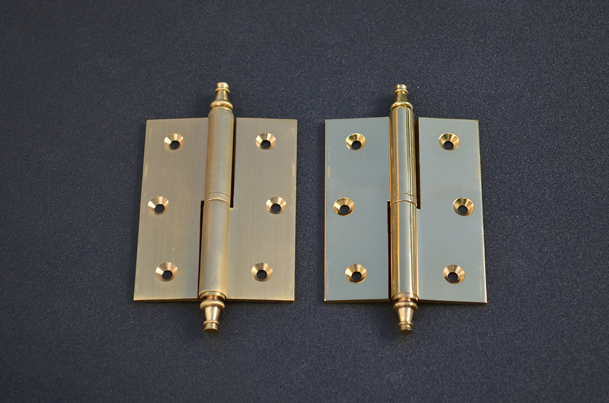 Bisagra en Latón 155 Brillo-Mate en medidas de 80×60 en espesor de 2.5mm. y 100×70 en espesor de 3mm. Para puertas de peso medio, derechas e izquierdas.