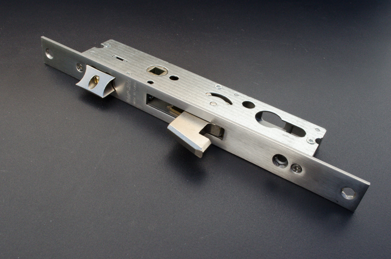 Backset:25,30,35 Cerradura Perfil Angosto Inox. con Picaporte y Gancho