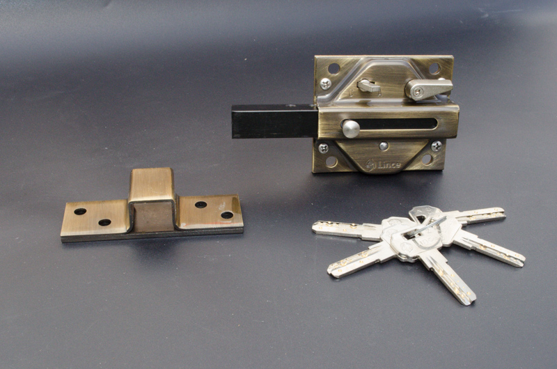 Cerradura tipo Barra LLave Exterior-Pasador Interior con Bloqueo Bronce Inglés